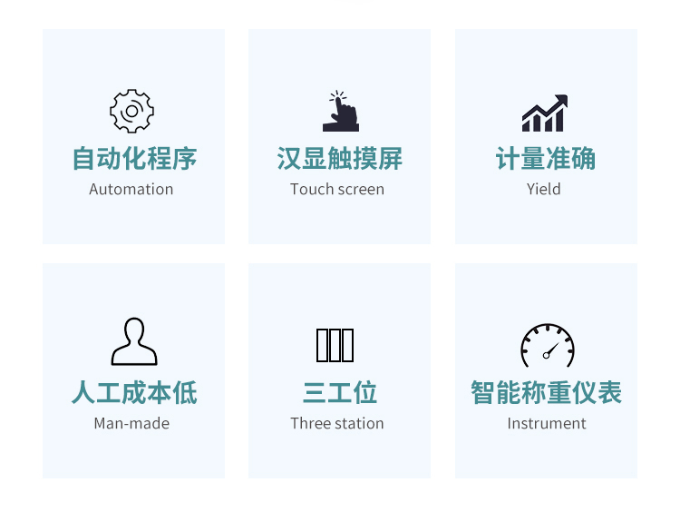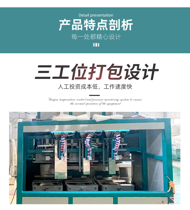 1、先進(jìn)的三工位六面整形設(shè)計(jì),計(jì)量精度高、包裝速度快、人工投資成本低。